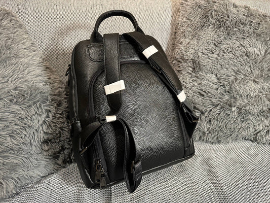 Black Genuine Leather Backpack | Unisex Everyday Bag with Wide Strap | Modern Travel and Work Backpack