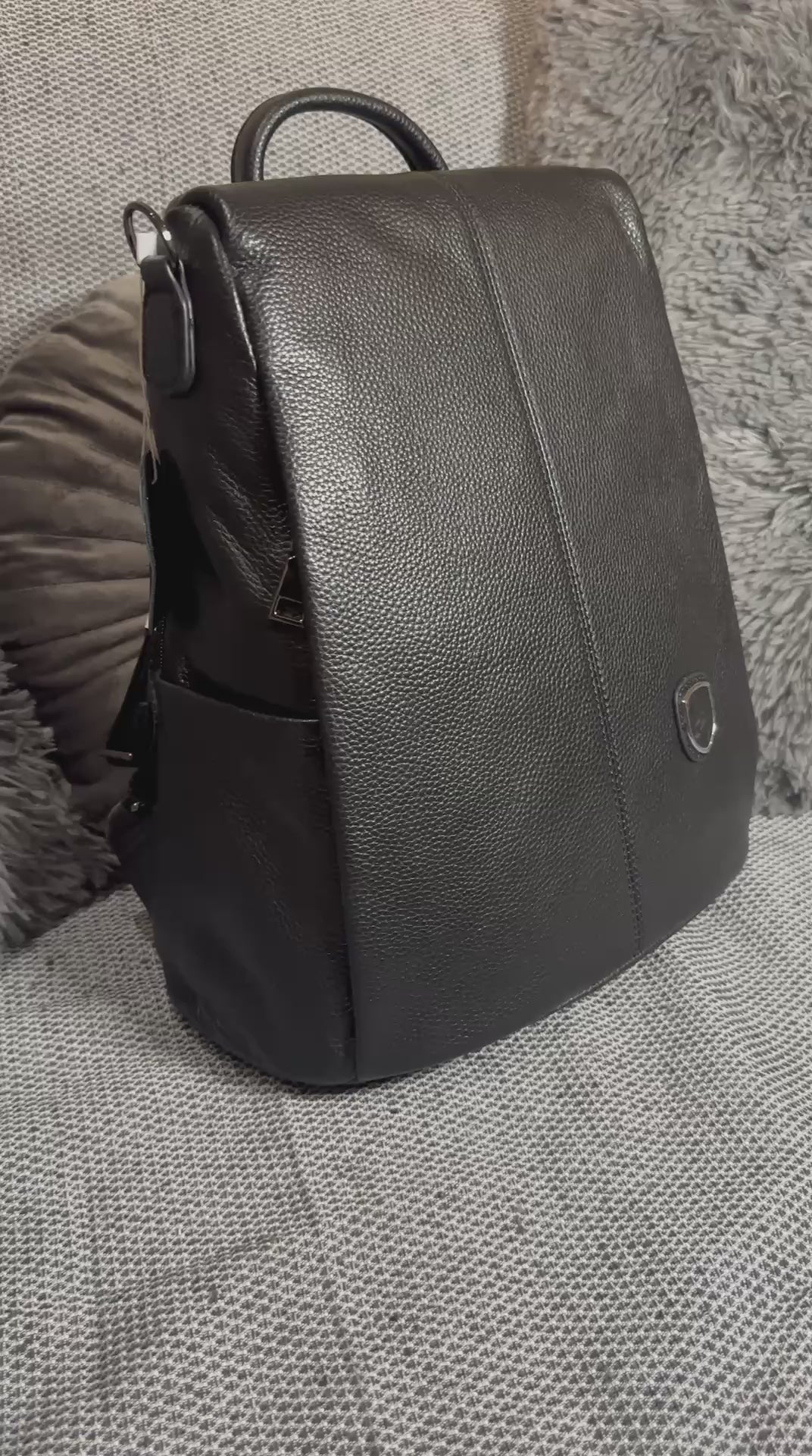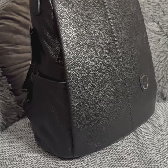 Black Genuine Leather Backpack | Unisex Minimalist Bag for Everyday Use | Sleek Travel and Work Backpack
