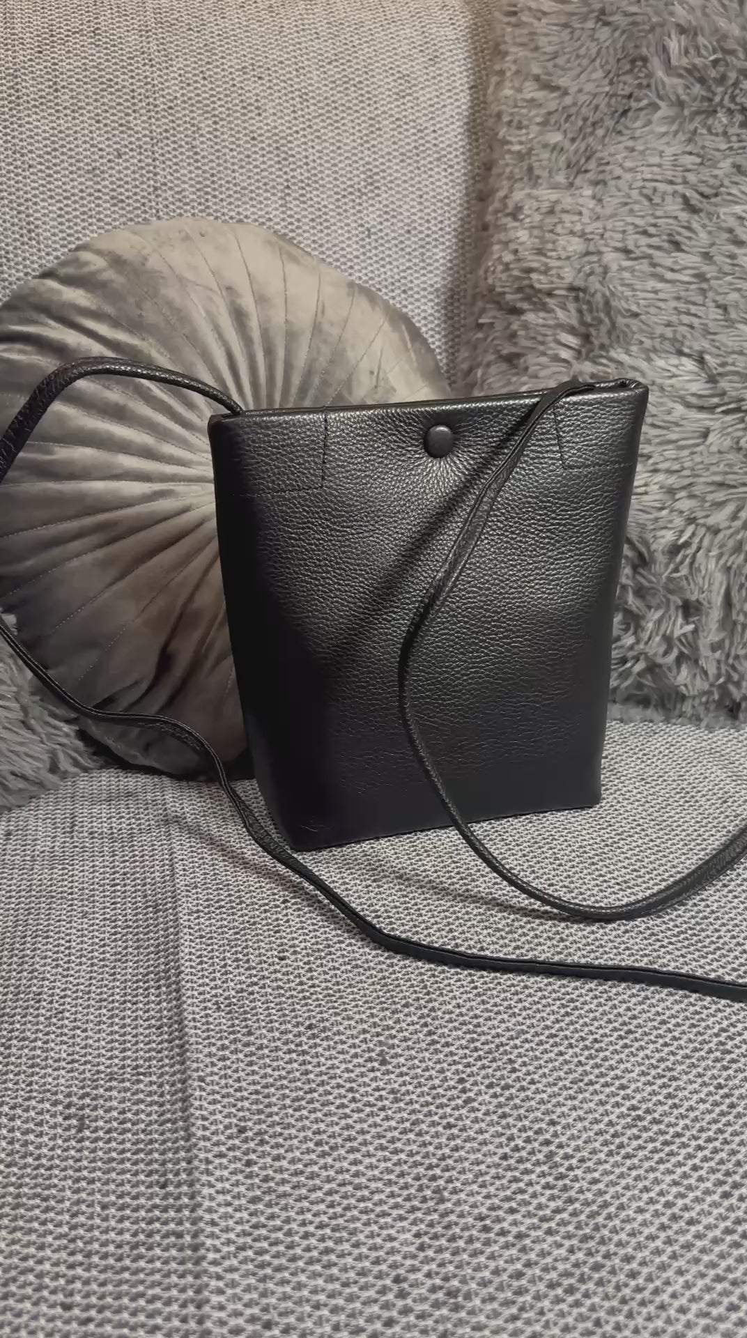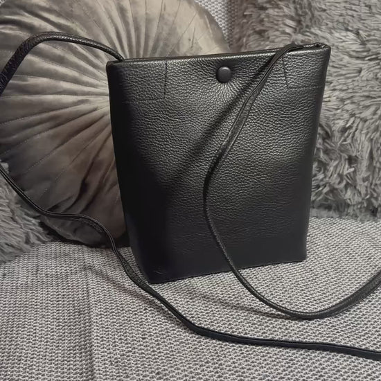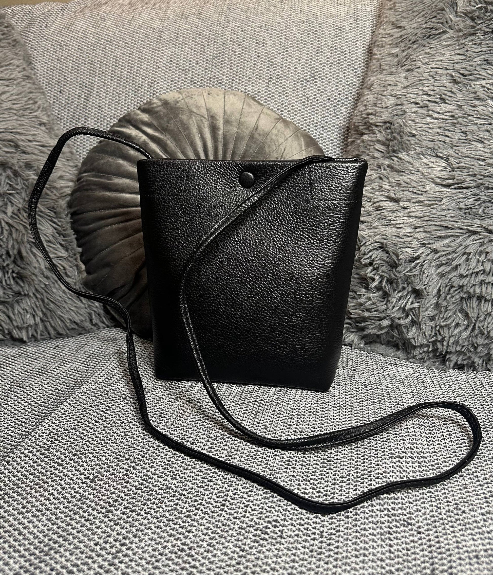 Black Genuine Leather Crossbody Bag | Small Minimalist Shoulder Purse | Handmade Everyday Bag