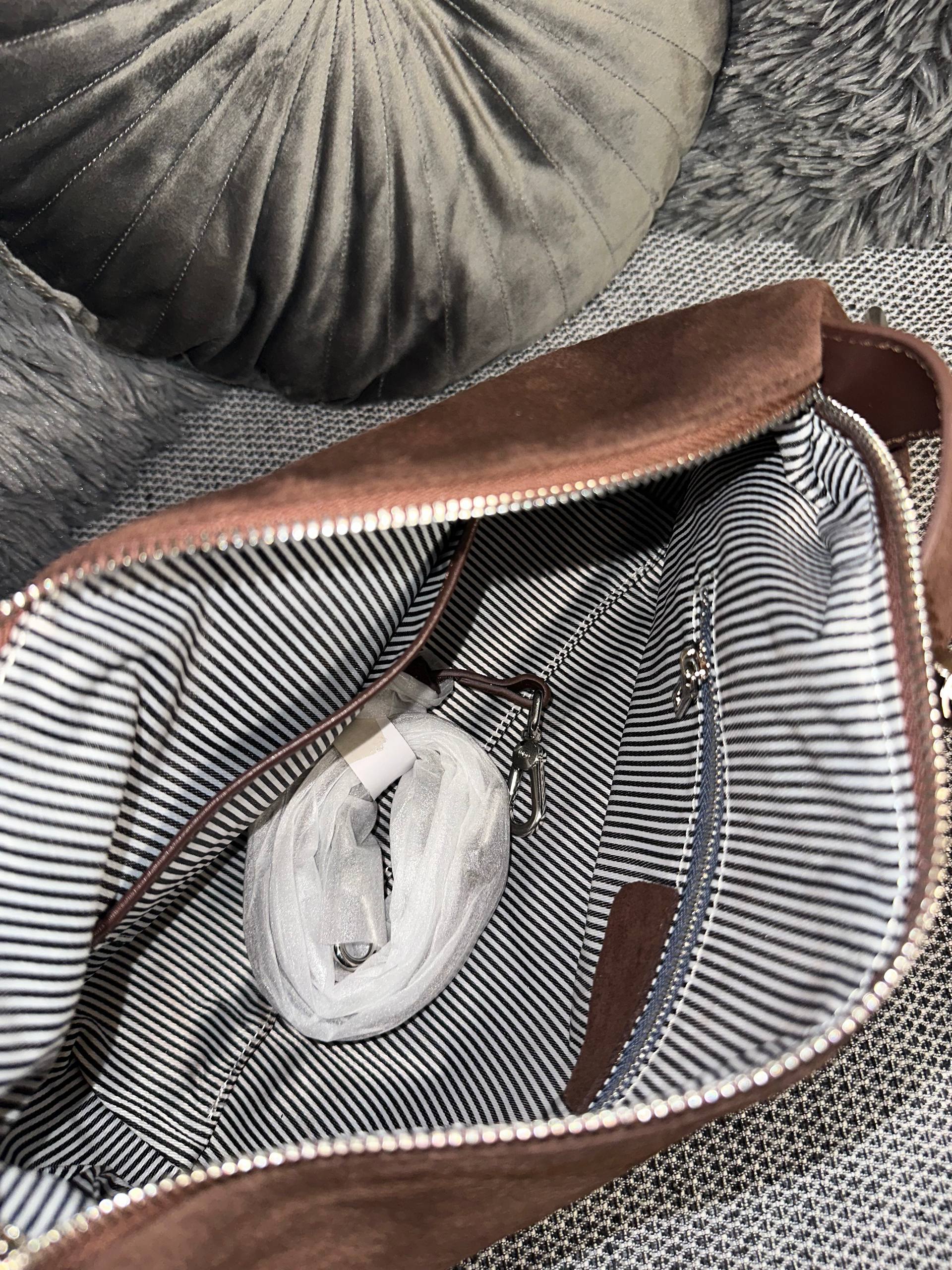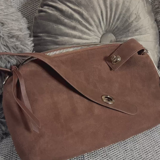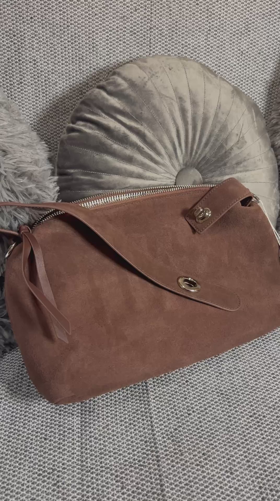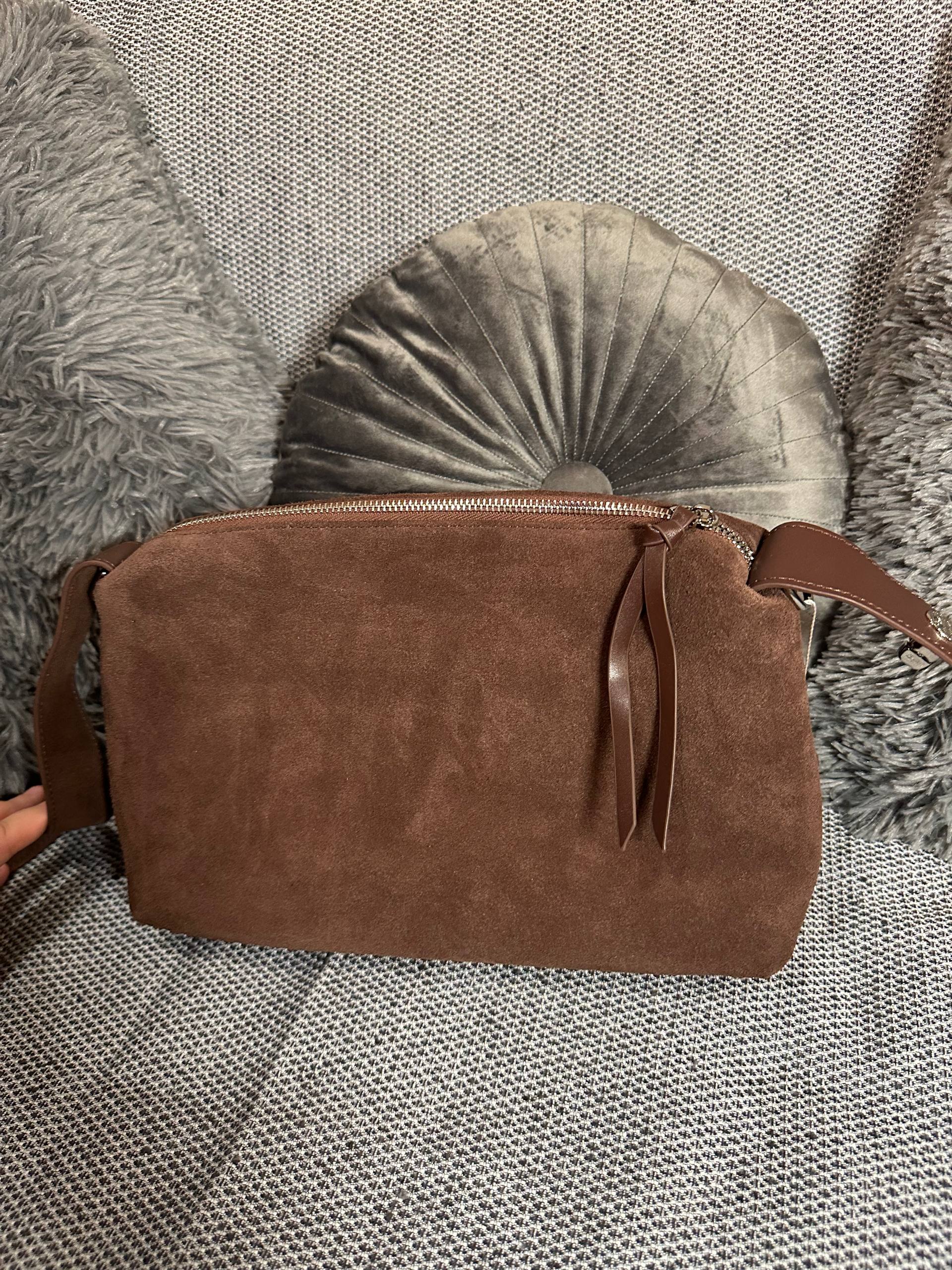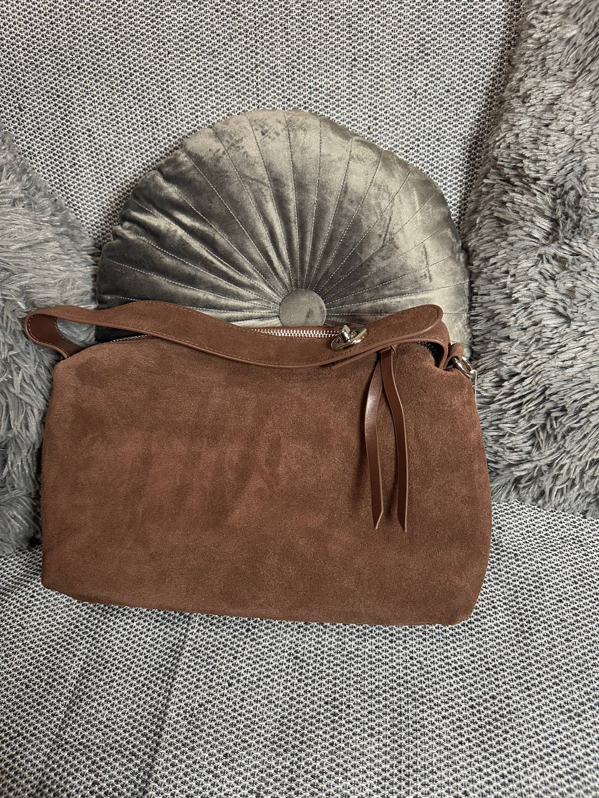This soft brown suede leather bag is the perfect blend of style and comfort.