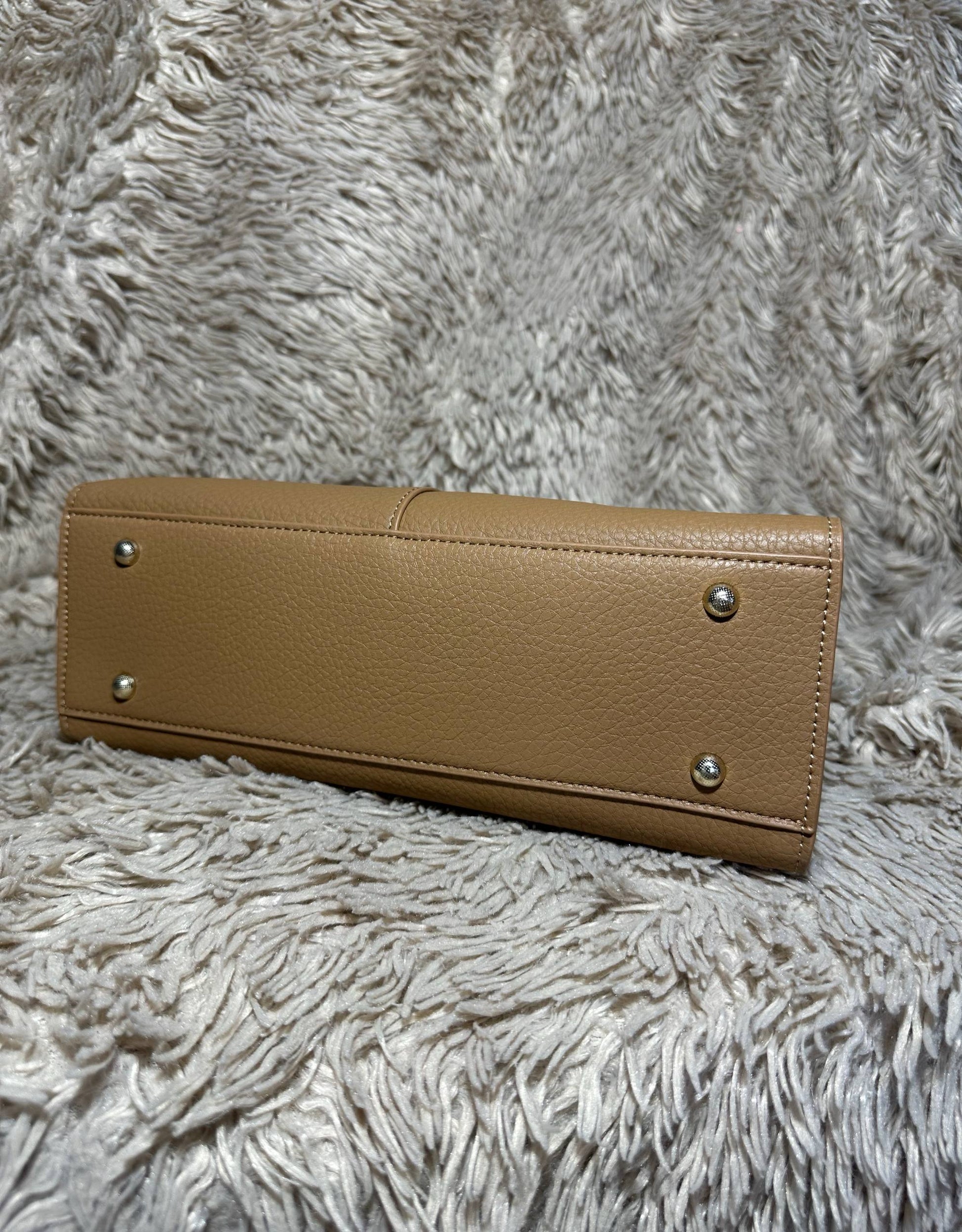 Elevate your everyday style with this structured camel genuine leather tote bag.