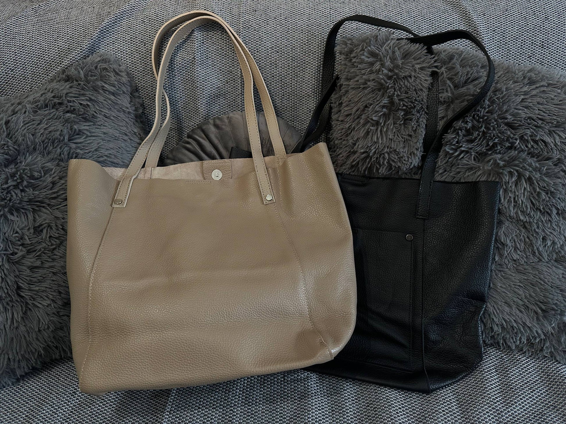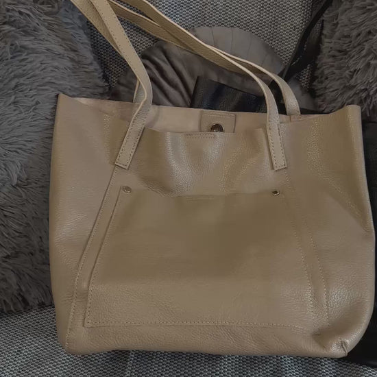 Minimalist Leather Tote Bag | Everyday Shoulder Bag | Black and Beige Handbag
