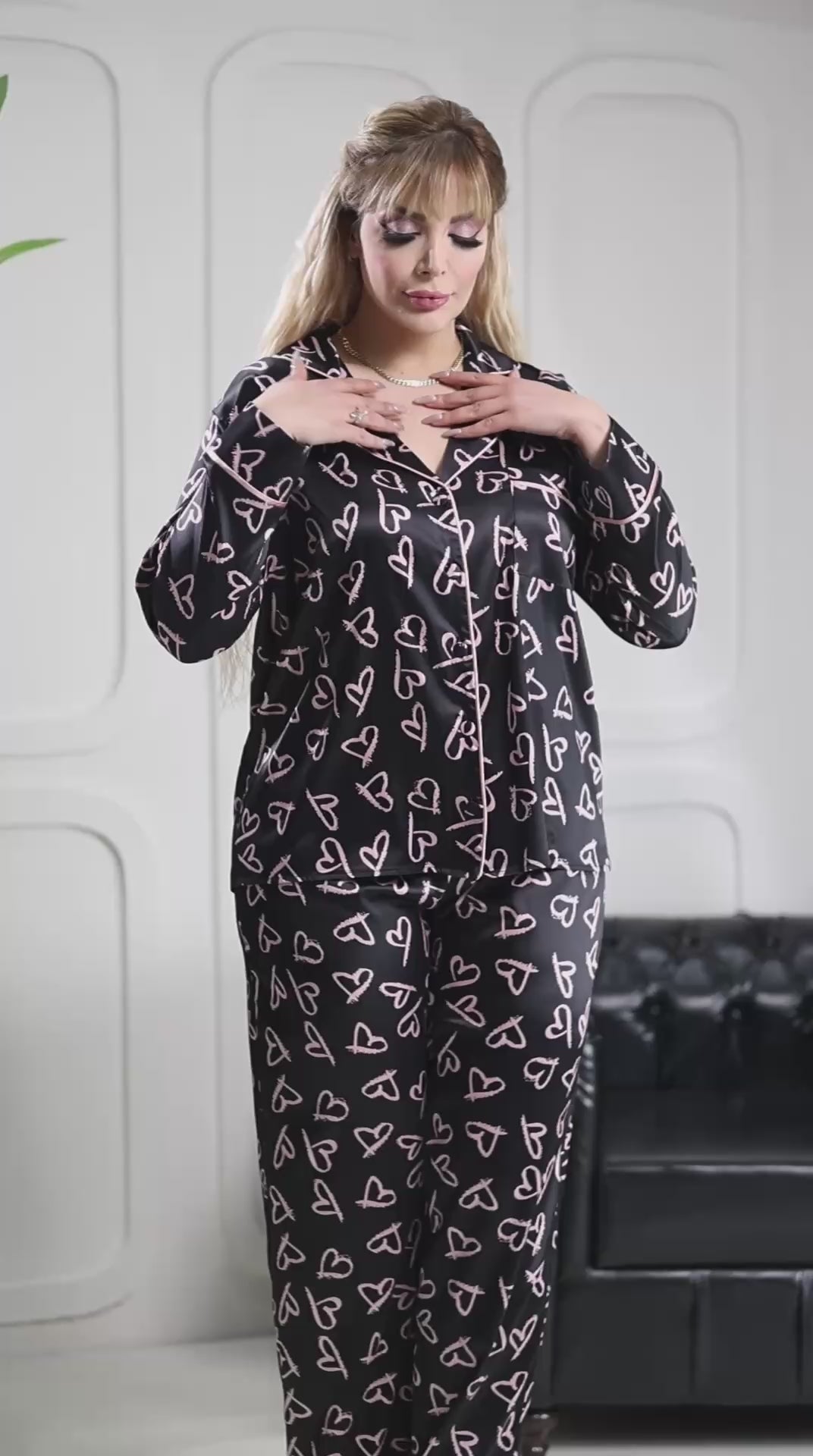 Fall in love with your loungewear! π This black satin pajama set with playful pink heart print is perfect for cozy nights and self-care moments. Designed for plus-size beauties who want both comfort and style.