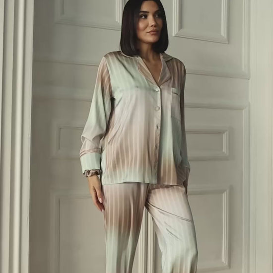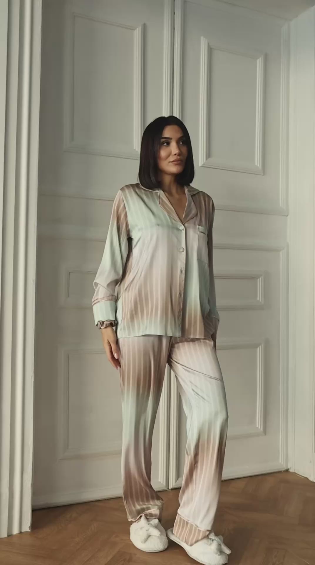 Indulge in elegance with this luxury satin pajama set, crafted from high-quality fabric that feels smooth and soft against the skin. Designed for women who value both comfort and style, this set will elevate your evenings and mornings with a touch of sophistication.